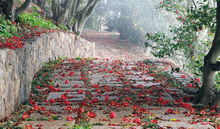 재작년 겨울, 우리네 마음에 봄바람을 불러온 드라마 ‘별에서 온 그대(이하 별그대)’를 기억하는지. 드라마 속 주인공 도민준(김수현)과 천송이(전지현)가 아무도 없는 곳으로 떠나자며 찾았던 장소가 있다. 바로, 장사도 해상공원. 80여 명의 주민이 살던 통영의 작은 외딴 섬. 그마저도 20여 년 전, 남은 이가 모두 섬을 떠나면서 무인도가 되었다. 그랬던 무인도가 2011년, 한 투자자를 만나면서 ‘카멜리아 문화해상공원’이란 이름으로 화려하게 재탄생한다. ‘카멜리아’란 동백꽃의 영어 이름이다. 그만큼 동백꽃이 한가득 섬을 메우고 있다는 뜻. 매년, 봄 장사도에 동백꽃이 피어날 때면 섬 전체는 불타는 듯한 장관을 연출한다.