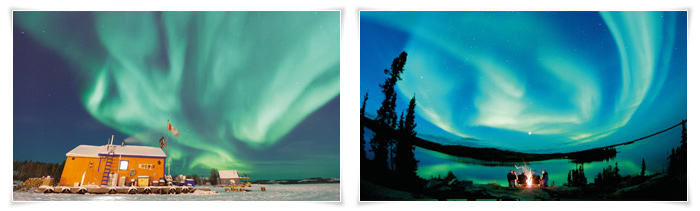 옐로우나이프에서는 하늘이 맑은 날이면 언제든 오로라를 볼 수 있다. 그야말로 밤이면 밤마다 빛의 축제가 열린다. 오로라는 라틴어로 ‘새벽’을 뜻하는 말이다. 태양에서 방출된 입자가 지구의 극지방 주변을 둘러싸면서 생긴 붉은색, 초록색 자기에너지의 띠인 것. 오로라는 북극과 남극 모두 발생하지만, 특히 캐나다 노스웨스트 준주(Northwest Territories)의 옐로우나이프와 유콘 준주(Yukon)의 화이트호스(Whitehorse)는 최고의 오로라 관측 장소로 세계적 명성을 자랑한다. 실제로 미국항공우주국 NASA가 선정한 세계에서 가장 오로라를 잘 관찰할 수 있는 지역으로, 연 240회 이상 오로라 관측이 가능하다. 이곳의 원주민들은 오로라를 Sprit of God 즉, 신의 정신이라 부르며 신성시한다. 그래서인지 오로라가 출현하는 날에 신혼부부가 첫날밤을 맞으면 천재 아이를 낳는다는 속설이 전해진다. 해마다 1만여 명 이상의 많은 관광객이 방문한다.